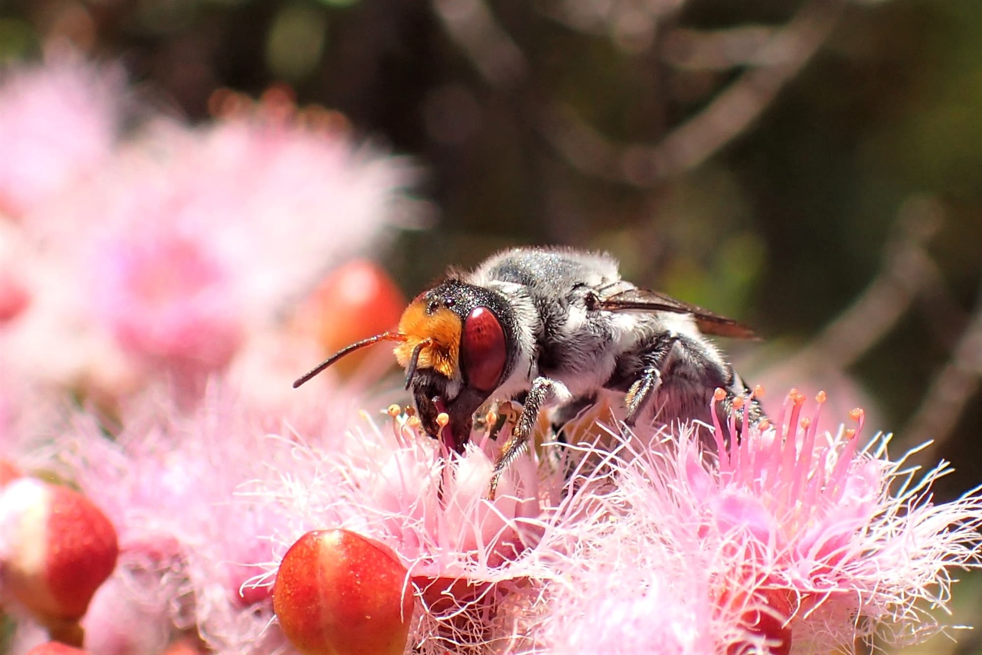 The unmistakable eyes of Megachile aurifrons… From the latin “aurum” meaning gold (and if you remember high school chemistry, why the chemical symbol for gold is Au) and “frons” simply meaning front (or brow when used in relation to an animal).