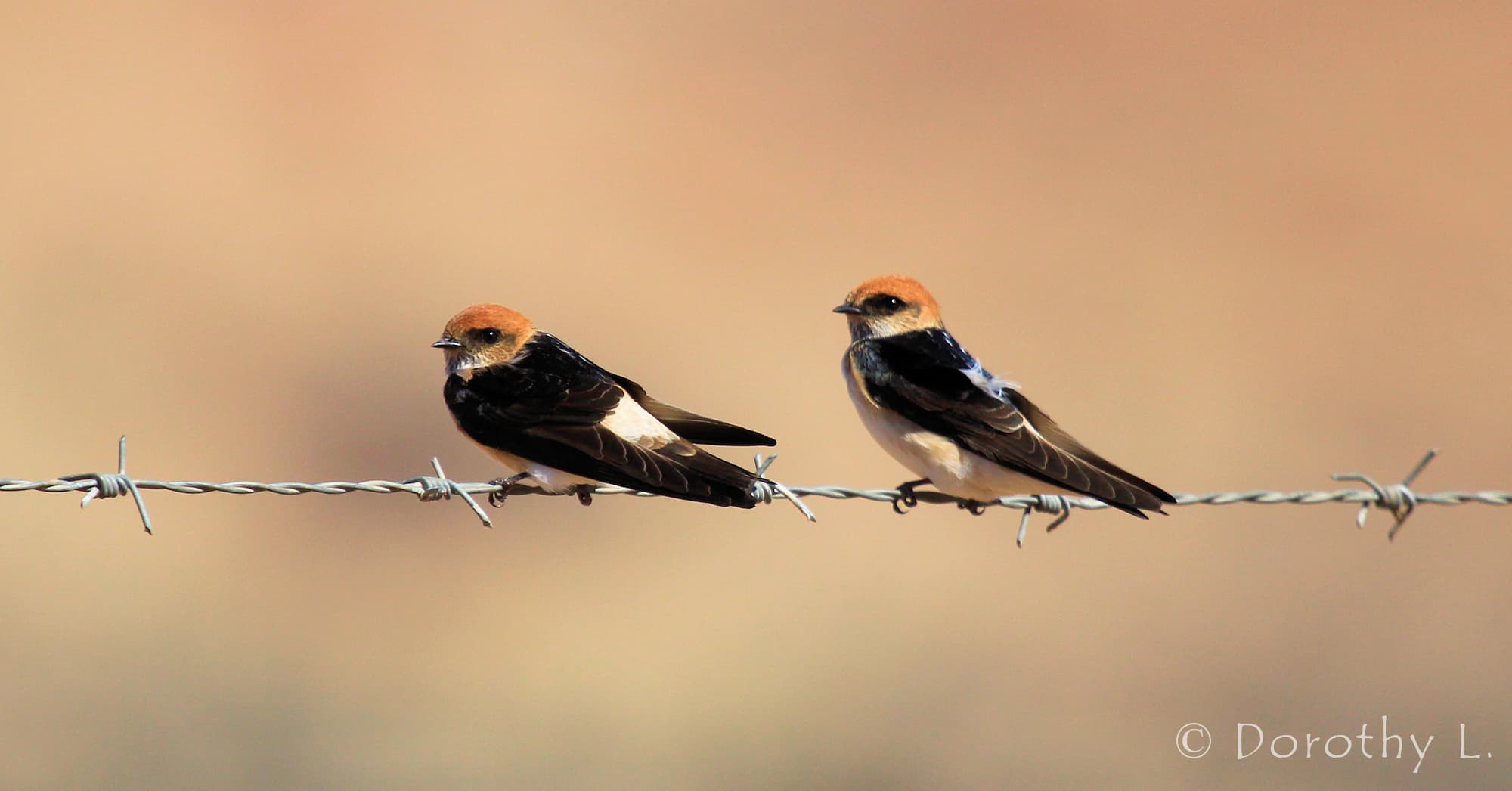 The Fairy Martin (Petrochelidon ariel) is a small bird, sometimes called the Bottle Swallow, because its nest is made from small pellets of mud or clay and shaped like a bottle. These nest are usually in colonies under bridges, eves of buildings, culverts and cliffs.